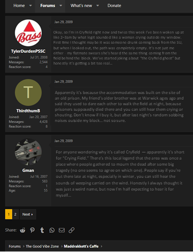 Legend has it that Cryfield Village was built on the site of a demolished prison. While many would argue that the prison still exists and that it’s called Cryfield Standard, over the years, there have actually been several reports of Cryfield Village and the adjacent Windmill Hill being haunted by ghostly convicts. It is allegedly home to a gang of wailing spirits who were once imprisoned on the grounds and wander the area, crying out in anguish.